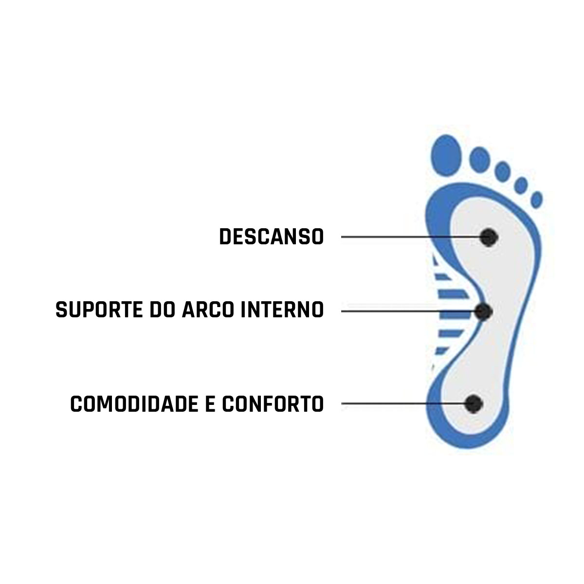 Indica para PÉS SAUDÁVEIS que procuram conforto ou um bom apoio, durante longas jornadas de trabalho ou para prevenir a pronação-supinação do pé.